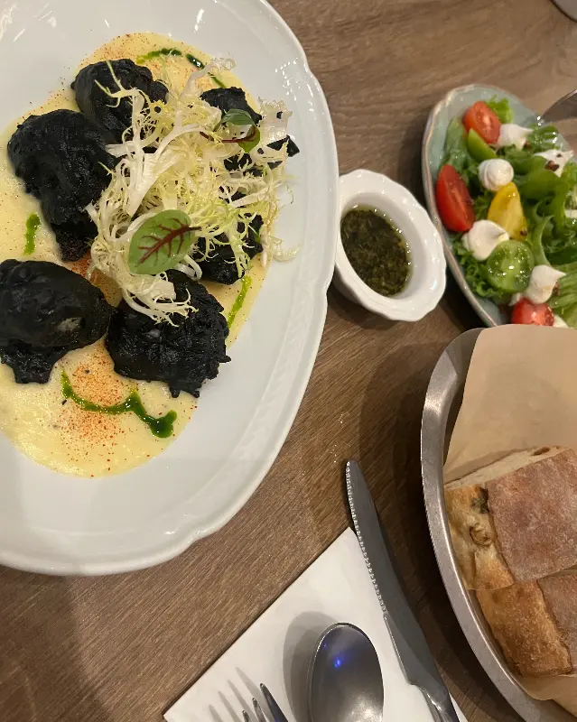 자리에 앉자마자 메뉴판을 정독하기 시작했다. 파스타, 스테이크, 리조또 등 다양한 이탈리안 요리들이 눈에 띄었고, 하나하나 정성이 느껴지는 메뉴 설명에 더욱 기대감이 커졌다. 고민 끝에 뽈뽀프리또, 윈터 트러플 크림 파스타, 그리고 한우 라구 라자냐롤을 주문했다. 와인 종류도 다양했는데, 음식과 어울리는 와인을 추천받아 함께 곁들이기로 했다.
