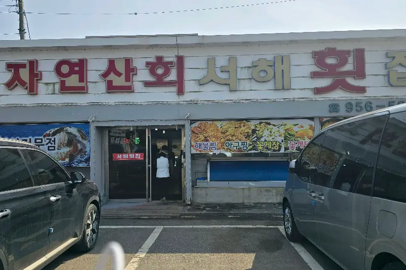 식당에 도착하니 큼지막하게 적힌 “자연산회 서해횟집” 간판이 눈에 들어왔다. 수족관에는 싱싱한 해산물들이 가득했고, 활기찬 분위기가 느껴졌다. 드디어 맛집 탐험 시작!