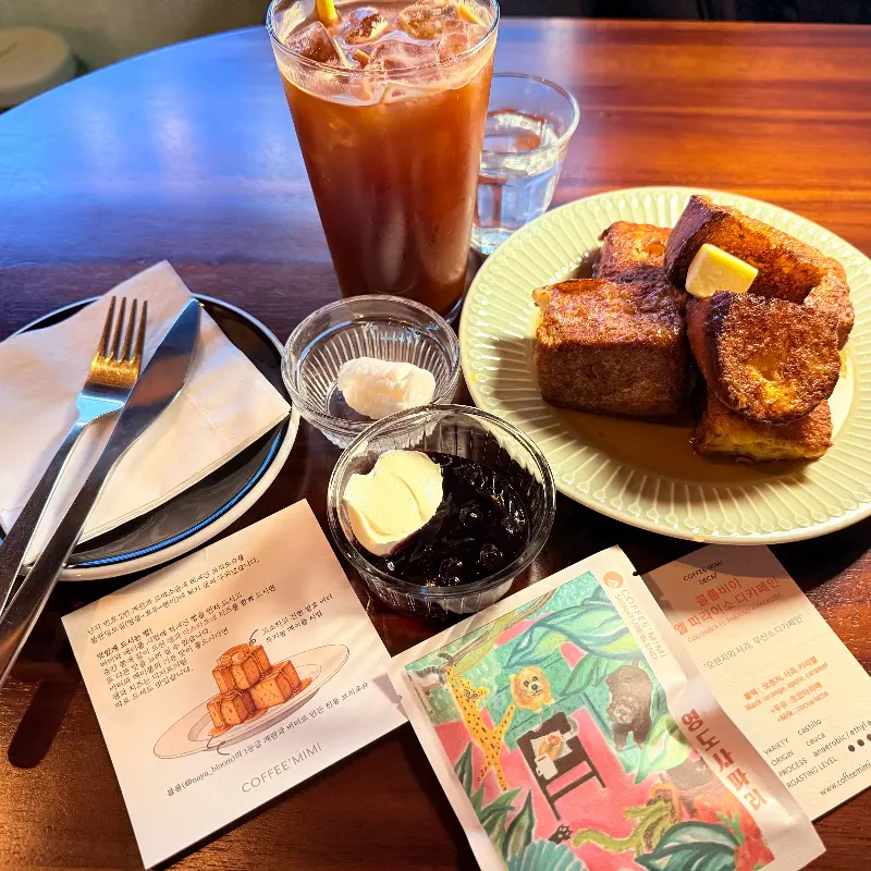 프렌치토스트를 먹는 동안, 어릴 적 주말 아침에 엄마가 만들어주던 프렌치토스트가 떠올랐다. 따뜻한 우유와 함께 먹던 그 맛은, 지금도 잊을 수 없는 추억으로 남아있다. 커피미미의 프렌치토스트는 그 추억을 떠올리게 하는, 따뜻하고 포근한 맛이었다. 굳이 비교하자면 고급 호텔 조식으로 나오는 프렌치 토스트보다 훨씬 맛있다고 감히 말할 수 있다.