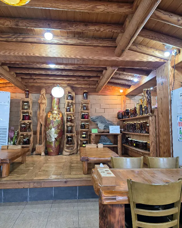 주차장에 차를 대고 식당으로 향하는 짧은 순간, 나는 주변 풍경에 넋을 잃었다. 낡은 기와지붕과 토담, 그리고 옹기종기 모여있는 장독대가 정겨운 분위기를 자아냈다. 마치 오랜 시골집에 초대받은 듯한 따뜻함이 느껴졌고, 입구에 들어서자 은은하게 풍겨오는 향긋한 나물 향이 코끝을 간지럽혔다. 점심시간이 조금 지난 시간이었음에도 식당 안은 손님들로 북적였다. 나무로 짜여진 천장과 벽면, 그리고 곳곳에 놓인 토속적인 소품들이 편안하고 아늑한 분위기를 더했다. 마치 산장에 온 듯한 기분이랄까. 나는 잠시 기다린 끝에 창가 자리에 앉을 수 있었다.