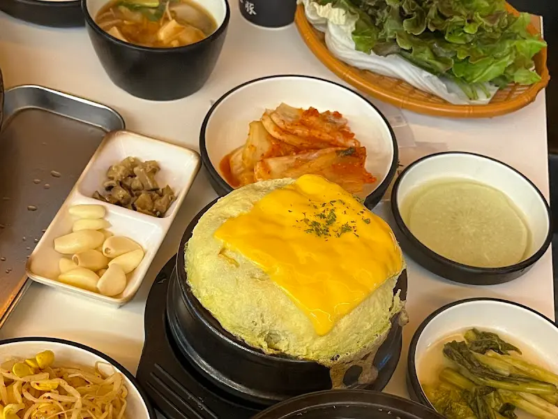 세트에 포함된 된장찌개와 치즈폭탄 계란찜도 빼놓을 수 없었다. 된장찌개는 깊고 구수한 맛이 일품이었고, 치즈폭탄 계란찜은 부드러운 식감과 고소한 치즈의 조화가 환상적이었다. 특히 계란찜 위에 올려진 치즈는 마치 눈이 내린 듯한 비주얼을 자랑했다. 숟가락으로 크게 떠서 밥과 함께 먹으니 정말 꿀맛이었다.