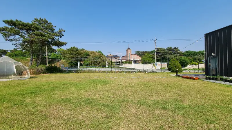 야외 잔디밭에는 테이블과 의자뿐만 아니라, 흔들의자와 텐트도 마련되어 있었다. 아이들은 잔디밭을 뛰어놀고, 어른들은 흔들의자에 앉아 여유를 즐기는 모습이 정말 보기 좋았다. 특히 해 질 녘 노을이 질 때, 야외에서 커피를 마시며 노을을 감상하는 것은 정말 낭만적일 것 같았다.