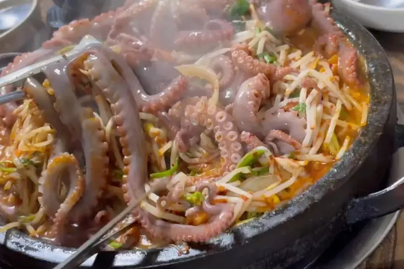 기다리는 동안 가게 앞을 서성이며 메뉴를 살펴보았다. 낙지찜, 낙지덮밥, 연포탕 등 다양한 메뉴가 있었지만, 역시 가장 눈에 띄는 것은 대표 메뉴인 ‘불낙지’였다. 매콤한 양념에 버무려진 낙지와 아삭한 콩나물의 조화가 벌써부터 입안에 침을 고이게 했다. 벽에 걸린 사진 액자 속에는 백종원의 3대 천왕에 나왔다는 문구가 적혀 있었는데, 이 집의 인기를 실감하게 했다.