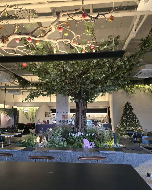 카페 중앙에는 커다란 나무가 웅장하게 자리 잡고 있었다. 마치 숲속에 들어온 듯한 느낌이었다. 나뭇가지에는 작은 조명들이 달려 있어, 따뜻하고 아늑한 분위기를 더했다. 천장도 높아서 답답함 없이 탁 트인 느낌이 좋았다. 넓은 공간은 2인석부터 다인석까지 다양한 테이블로 채워져 있었다. 혼자 온 나도, 여럿이 함께 온 사람들도 모두 편안하게 즐길 수 있는 공간이었다.