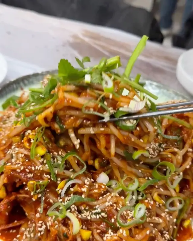 젓가락으로 콩나물과 아구를 함께 집어 입에 넣으니, 아삭아삭한 콩나물의 식감과 쫄깃한 아구살의 조화가 환상적이었다. 양념은 적당히 매콤하면서도 감칠맛이 느껴졌다. 정말 밥도둑이 따로 없었다.