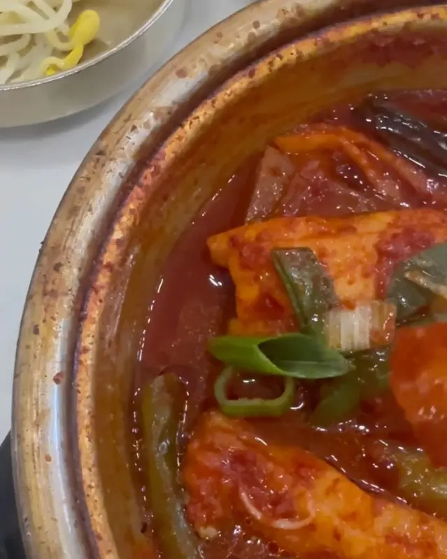 잠시 후, 드디어 기다리고 기다리던 순살 갈치조림이 등장했다. 냄비 안에는 큼지막한 갈치 토막들이 붉은 양념에 푹 잠겨 있었다. 보기만 해도 군침이 절로 도는 비주얼이었다. 갈치 위에는 송송 썰린 파와 고추가 얹어져 있어, 먹음직스러움을 더했다. 코를 찌르는 매콤한 향이 식욕을 더욱 자극했다.