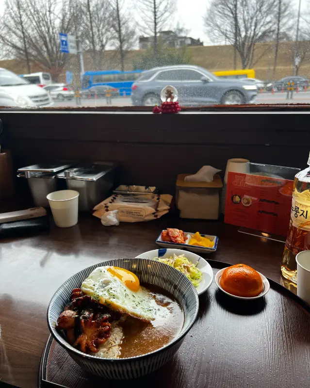 다음으로 천호 쭈꾸미 카레를 맛보았다. 쭈꾸미는 탱글탱글하면서도 부드러웠고, 매콤한 양념이 카레와 절묘하게 어우러졌다. 자칫 느끼할 수 있는 카레의 맛을 쭈꾸미의 매콤함이 잡아주어, 질릴 틈 없이 계속 먹을 수 있었다. 특히 밥 위에 쭈꾸미와 카레를 듬뿍 얹어 반숙 계란후라이와 함께 비벼 먹으니, 그 맛은 가히 환상적이었다.