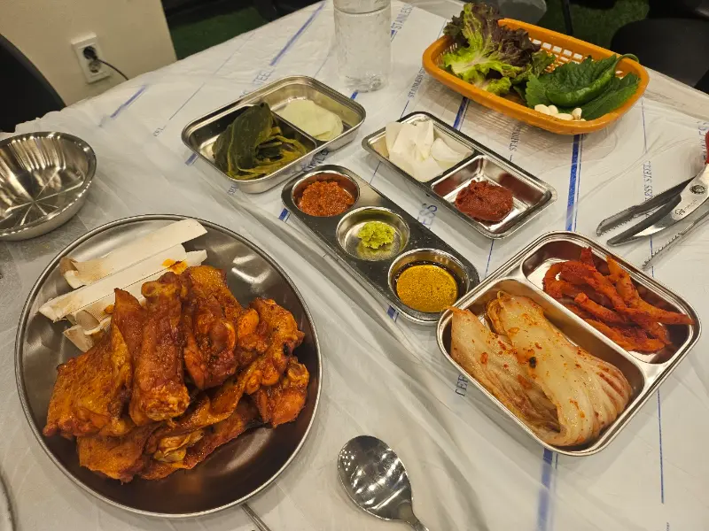 잘 익은 닭갈비 한 점을 집어 입에 넣으니, 감탄사가 절로 나왔다. 숯불 향이 은은하게 퍼지면서, 매콤달콤한 양념이 입안 가득 퍼졌다. 닭고기는 어찌나 부드러운지, 씹을 틈도 없이 녹아내리는 듯했다. 특히 좋았던 건, 양념이 과하지 않다는 점이었다. 닭고기 본연의 맛을 해치지 않으면서, 풍미를 더해주는 절묘한 조화였다. 깻잎에 싸서 먹으니 향긋한 풍미가 더해졌고, 쌈무와 함께 먹으니 아삭한 식감이 즐거움을 더했다. 쉴 새 없이 젓가락을 움직이며 닭갈비를 해치웠다.