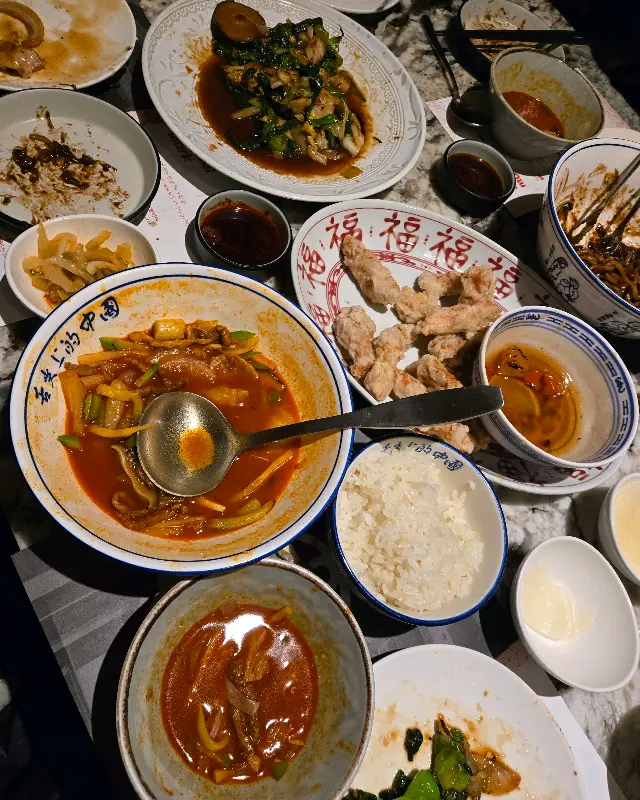 드디어 기다리고 기다리던 동파육이 등장했다. 윤기가 자르르 흐르는 동파육은 보기만 해도 군침이 돌았다. 젓가락으로 살짝 건드리니 부드럽게 찢어지는 것을 보고 감탄했다. 한 입 맛보니 입안에서 사르르 녹는 듯한 식감에 감동했다. 돼지 특유의 잡내는 전혀 느껴지지 않았고, 깊은 풍미와 촉촉함이 입안 가득 퍼져 나갔다. 룸 안에는 에어컨 바람이 은은하게 불어왔지만, 갓 조리된 동파육의 따뜻함은 고스란히 느껴졌다.