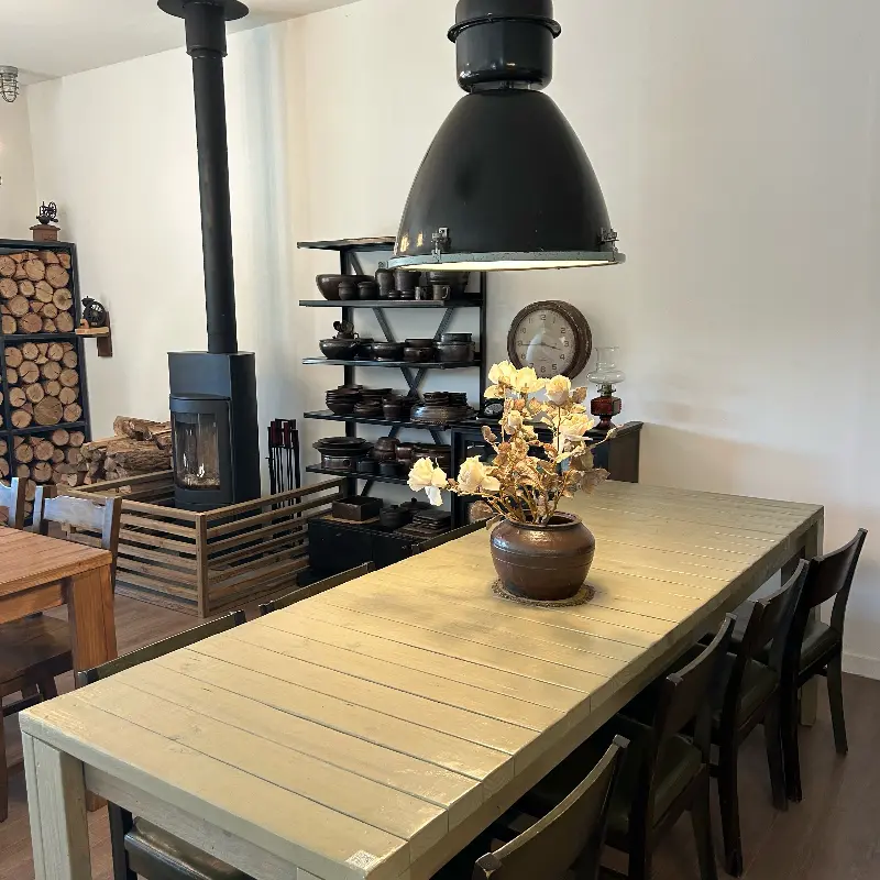 가장 먼저 눈에 들어온 것은 벽난로였다. 활활 타오르는 장작불을 멍하니 바라보고 있으니, 어릴 적 할머니 댁에 놀러 갔을 때의 따뜻한 기억이 떠올랐다. 벽난로 옆에는 장작이 가득 쌓여 있었는데, 그 모습마저도 하나의 멋진 인테리어 소품처럼 느껴졌다. 에서 보듯이, 카페는 전체적으로 편안하고 따뜻한 분위기를 자아냈다. 나무로 만들어진 기다란 테이블과 의자, 그리고 은은한 조명이 어우러져 아늑한 공간을 완성했다.