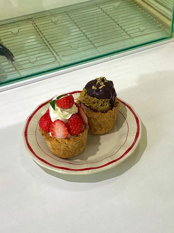 진열대 안에는 형형색색의 타르트들이 보석처럼 빛나고 있었다. 딸기, 무화과, 바나나, 초콜릿… 보기만 해도 황홀해지는 비주얼에, 저절로 탄성이 나왔다. 특히 ‘두바이 초코 타르트’는 카다이프 크림이 산처럼 쌓여 있어 압도적인 존재감을 뽐냈다.