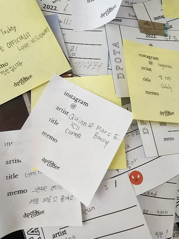 주문한 메뉴가 나오기 전, 카페를 좀 더 둘러봤다. 벽 한쪽에는 방문객들이 남긴 메모들이 빼곡하게 붙어 있었다. 저마다의 추억과 감성이 담긴 글들을 읽다 보니, 나도 모르게 미소가 지어졌다. 이곳을 방문한 많은 사람들이 나처럼 디포타커피에서 좋은 기억을 쌓았으리라. 처럼, 메모 하나하나에서 카페에 대한 애정이 묻어났다.