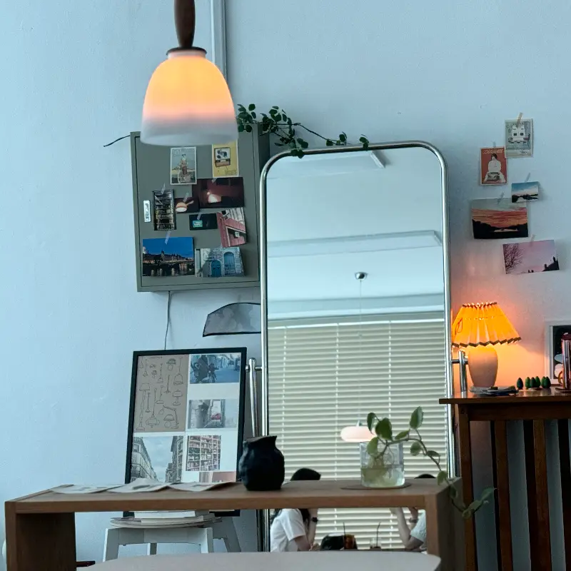 문을 열고 들어선 순간, 예상치 못한 공간이 눈앞에 펼쳐졌다. 밖에서 보던 허름한 건물과는 완전히 다른, 세련되고 아늑한 분위기의 카페였다. 높은 천장과 넓은 창문 덕분에 햇살이 가득 들어왔고, 은은한 조명이 공간을 따뜻하게 감싸 안았다. 앤티크 가구와 소품들이 조화롭게 배치되어 있었고, 벽 한쪽에는 엽서와 사진들이 무심하게 붙어있었다. 마치 오래된 친구의 아지트에 놀러 온 듯한 편안함이 느껴졌다.