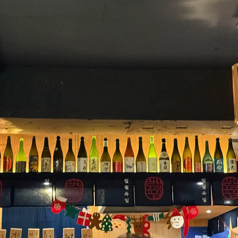 가게 문을 열자, 은은한 조명이 아늑하게 감싸는 공간이 눈에 들어왔다. 나무 소재를 사용한 인테리어는 편안함을 더했고, 벽 한 켠을 가득 채운 사케 병들이 이국적인 분위기를 자아냈다. 마치 일본 현지에 와 있는 듯한 착각이 들 정도였다. 평일 저녁 시간이었음에도 불구하고, 이미 많은 사람들이 삼삼오오 모여 술잔을 기울이고 있었다. 활기찬 분위기 속에서도 시끄럽다는 느낌보다는, 오히려 사람들의 웃음소리가 기분 좋게 들려왔다. 나는 바 자리에 앉아 메뉴판을 펼쳐 들었다.