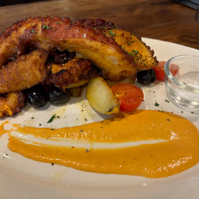 잠시 후, 드디어 뽈뽀 스테이크가 나왔다. 접시 위에 놓인 큼지막한 문어 다리는 윤기가 자르르 흘렀고, 먹음직스러운 색깔은 식욕을 자극했다. 곁들여진 올리브와 방울토마토, 그리고 독특한 소스는 문어 스테이크의 풍미를 더해줄 것 같았다. 칼을 들어 문어 다리 한 조각을 잘라 입에 넣는 순간, 나는 탄성을 내질렀다. 이렇게 부드러운 문어는 처음이었다! 쫄깃하면서도 사르르 녹는 듯한 식감은 정말 환상적이었다. 짭짤하면서도 고소한 맛은 입안 가득 퍼져 나갔고, 곁들여진 소스와 올리브는 풍미를 더욱 풍부하게 만들어 주었다.