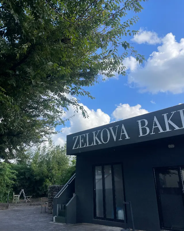 드디어 방문 당일, 설레는 마음을 안고 렌터카를 몰아 젤코바 베이커리 카페로 향했다. 네비게이션이 안내하는 대로 따라가니, 푸른 하늘 아래 젤코바 베이커리 카페 건물이 눈에 들어왔다. 외관부터가 예사롭지 않았다. 검은색 외벽에 “ZELKOVA BAKERY”라는 흰색 글씨가 세련되게 새겨져 있었고, 주변에는 푸릇푸릇한 나무들이 둘러싸고 있었다. 마치 동화 속에 나오는 빵집 같은 느낌이었다. 건물 옆에는 야외 테이블도 마련되어 있었는데, 날씨가 좋은 날에는 밖에서 빵과 커피를 즐겨도 좋을 것 같았다.