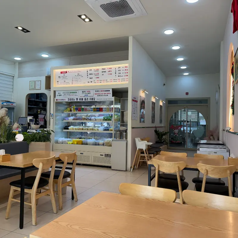 가게 문을 열자, 생각보다 넓고 깔끔한 공간이 눈에 들어왔다. 테이블 간 간격도 넉넉해서 편안하게 식사를 즐길 수 있을 것 같았다. 은은하게 퍼지는 마라탕 특유의 향신료 냄새가 코를 간지럽혔다. 벽면에는 아기자기한 그림들과 장식들이 걸려 있어, 편안하고 아늑한 분위기를 더했다. , 에서 볼 수 있듯이, 깔끔하고 밝은 조명이 공간을 환하게 비추고 있었다.