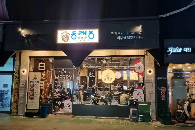 가게 앞에 도착하니 은은한 조명이 따뜻하게 맞아주는 듯했다. 커다란 통창 너머로 보이는 내부 풍경은 왁자지껄한 활기가 느껴졌다. 연말 분위기를 내는 장식들이 더해져 설렘을 더했다. 얼른 안으로 들어가 따뜻한 기운을 느끼고 싶어졌다.