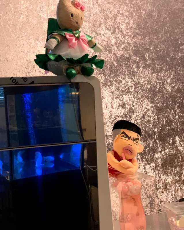 벽 한쪽에는 커다란 하트 모양 조명이 반짝이고, 다른 한쪽에는 슬램덩크, 주술회전 등 인기 애니메이션 굿즈들이 전시되어 있었다. 마치 작은 전시회를 옮겨 놓은 듯 다채로운 볼거리에 눈이 쉴 틈이 없었다. 어디를 둘러봐도 사진 찍기 좋은 포토존이라, 나도 모르게 카메라 셔터를 연신 눌러댔다.