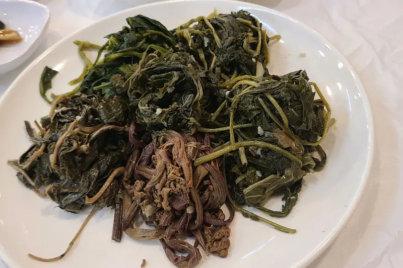 가장 먼저 눈에 들어온 건 역시나 다채로운 산채나물이었다. 갓 뜯어온 듯 신선함이 느껴지는 나물들은 보기만 해도 건강해지는 기분이었다. 윤기가 자르르 흐르는 모습이 얼마나 맛있을까 기대감을 한껏 끌어올렸다.