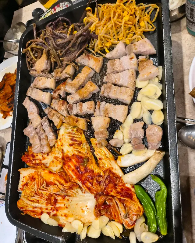 잘 익은 대패삼겹살 한 점을 집어 입에 넣으니, 입안 가득 퍼지는 고소함이 일품이었다. 저렴한 가격에도 불구하고 고기 질이 상당히 좋았다. 신선한 야채와 함께 쌈을 싸 먹으니, 느끼함은 사라지고 깔끔한 맛만 남았다. 쉴 새 없이 젓가락질을 하며, 어릴 적 친구들과 함께 먹던 그 맛을 다시 느끼는 듯했다.