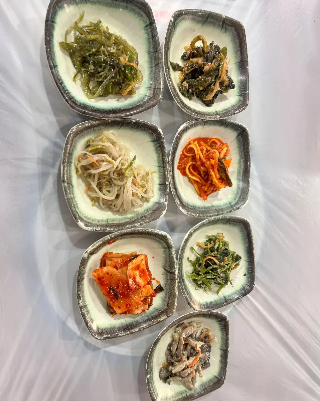 에 나타난 것처럼, 나물, 김치, 해초 등 보기만 해도 건강해지는 듯한 반찬들이었다. 윤기가 좌르르 흐르는 겉절이 김치는 보기만 해도 군침이 돌았다. 젓가락을 뻗어 맛을 보니, 역시나 기대 이상! 신선한 재료와 정성이 느껴지는 맛이었다. 특히, 짭짤하면서도 고소한 맛이 일품인 김은 가오리찜과 환상의 궁합을 자랑했다.