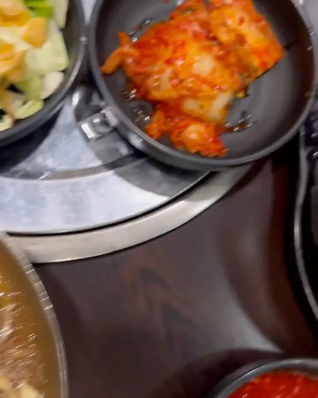주문을 마치자, 밑반찬들이 빠르게 테이블 위로 차려졌다. 윤기가 자르르 흐르는 깍두기를 한 입 베어 무니, 시원하면서도 아삭한 식감이 입안 가득 퍼졌다. 젓갈 향이 살짝 감도는 것이, 감자탕과 환상적인 궁합을 자랑할 것 같았다. 샐러드도 신선하고 드레싱도 맛있어서, 메인 메뉴가 나오기 전부터 젓가락이 쉴 새 없이 움직였다.
