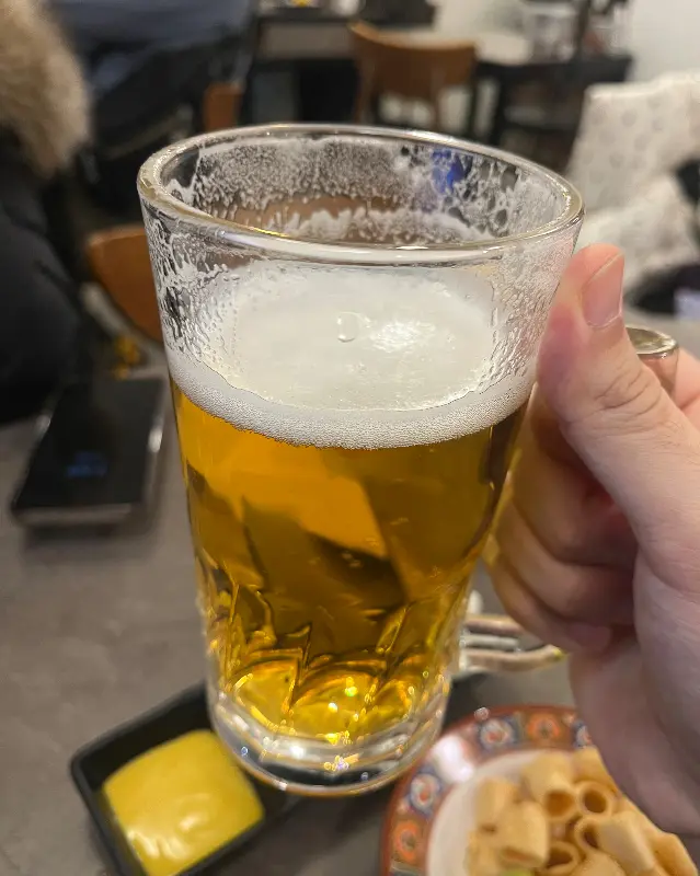 오늘의 미식 여정을 시작하는 시원한 맥주 한 잔