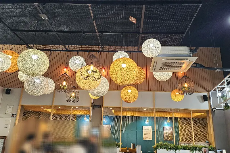 주차장도 넓어서 차 가지고 오기도 편했고, 매장 안으로 들어서니 생각보다 훨씬 넓고 깔끔해서 완전 만족! 테이블 간 간격도 넉넉해서 편안하게 식사를 즐길 수 있겠더라. 천장에 달려있는 갓 모양의 조명들도 은은하게 분위기를 더해주고, 전체적으로 따뜻하고 아늑한 느낌이랄까? 가족 외식이나 모임 장소로도 손색없을 것 같다는 생각이 들었어.