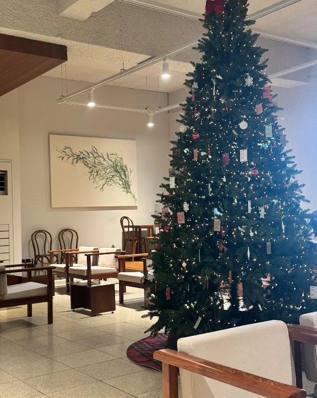 카페에 들어서자마자 눈에 띈 것은 중앙에 놓인 거대한 크리스마스 트리였습니다. 12월, 크리스마스 시즌에 방문했을 때 트리는 더욱 따뜻하고 아늑한 분위기를 자아냈습니다. 트리에 장식된 작은 오너먼트들은 마치 어린 시절의 추억을 떠올리게 하는 듯했습니다. 트리의 은은한 조명은 카페 전체를 부드럽게 감싸 안으며, 편안한 분위기를 더했습니다.