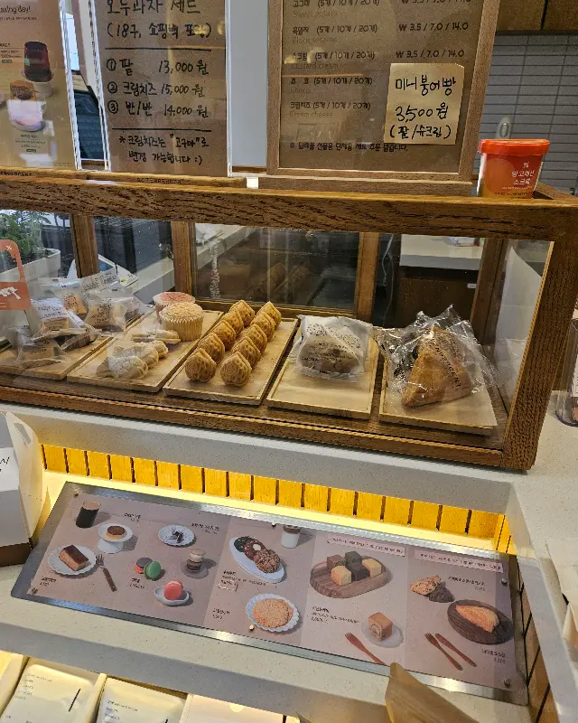 메뉴판을 찬찬히 훑어봤다. 커피 종류가 다양했는데, 원두를 미디엄과 다크 중에서 고를 수 있다는 점이 마음에 들었다. 나는 평소 쌉쌀한 다크 로스팅을 선호하기에, 주저 없이 다크 아메리카노를 선택했다. 디저트로는 이곳의 인기 메뉴라는 호두과자를 골랐다. 팥 앙금과 고구마 앙금 두 가지 맛이 있었는데, 둘 다 놓치고 싶지 않아 하나씩 주문했다.