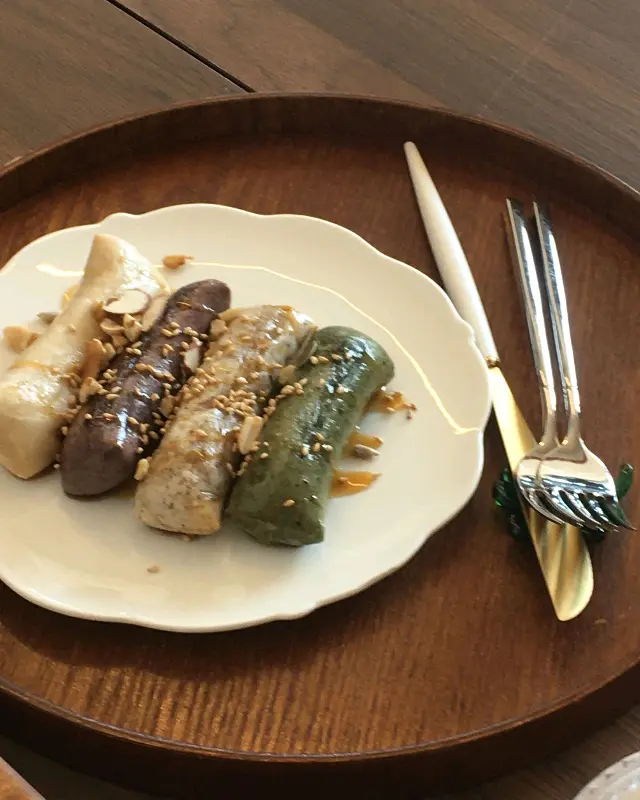 잠시 기다리는 동안, 주문한 개성주악이 먼저 나왔다. 둥근 쟁반 위에 가지런히 놓인 네 종류의 주악은 그 색감부터가 눈길을 사로잡았다. 흰색, 갈색, 쑥색, 검은색의 주악 위에는 각각 다른 토핑이 올려져 있어 보는 즐거움을 더했다. 윤기가 자르르 흐르는 모습은 저절로 침샘을 자극했다. 한 입 베어 무니, 겉은 쫀득하고 속은 촉촉한 식감이 입안 가득 퍼져 나갔다. 많이 달지 않아 좋았고, 은은한 찹쌀의 풍미가 느껴졌다.