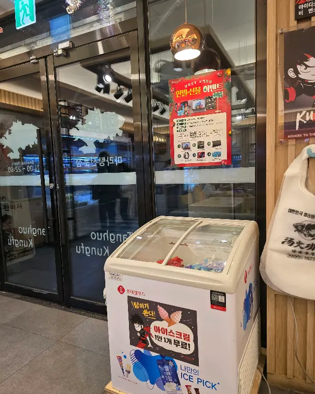 식사를 마치고 나니, 직원분께서 아이스크림을 서비스로 주셨다. 매운 입안을 달콤하게 마무리할 수 있어서 좋았다. 탕화쿵푸의 친절한 서비스에 다시 한번 감동했다.