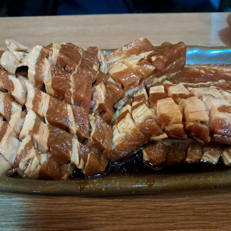 퇴근 후 곧바로 달려간 참숯골은 생각보다 훨씬 넓고 쾌적했다. 테이블 간 간격도 넉넉해서 편안하게 식사를 즐길 수 있을 것 같았다. 평일 저녁인데도 손님들이 꽤 많았다. 역시 동네 맛집은 다르구나, 라는 생각이 스쳤다. 자리에 앉자마자 메뉴판을 펼쳐 들었다. 돼지갈비, 왕갈비, 목살, 항정살… 고민 끝에 우리는 돼지갈비 3인분과 누룽지탕을 주문했다. 참숯골에 왔으니, 대표 메뉴인 돼지갈비를 맛보지 않을 수 없었다.