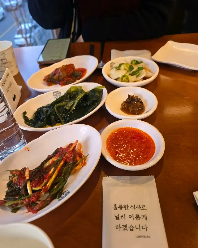 밑반찬은 하나하나 정갈하고 맛깔스러웠다. 특히 갓김치, 묵은지, 깻잎 장아찌 등 김치 종류가 다양하게 나와서 좋았다. 고기와 함께 곁들여 먹으면 느끼함도 잡아주고, 입맛도 돋우어 줄 것 같았다.