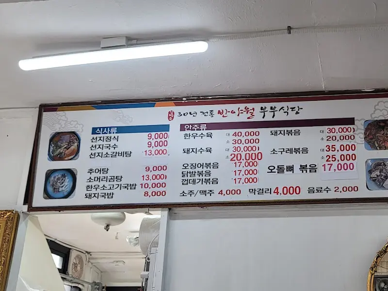 어릴 적 할머니 손을 잡고 찾았던 반야월시장. 그 북적이는 인파 속에서 풍겨오던 낯설지만 정겨운 음식 냄새는 아직도 코끝에 선명하다. 세월이 흘러 그 시절 할머니의 따뜻한 손길이 그리워질 때면, 나는 어김없이 그 추억을 찾아 반야월시장으로 향한다. 오늘 나의 발길을 멈추게 한 곳은 30년 전통의 깊은 역사를 자랑하는 부부식당. 간판에서부터 느껴지는 세월의 흔적은 마치 시간 여행을 떠나온 듯한 착각을 불러일으킨다.