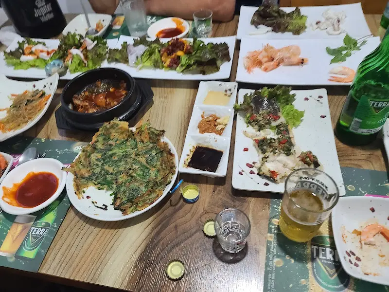 잠시 후, 테이블 위로 하나둘씩 안주가 차려지기 시작했다. 쟁반 가득 담긴 음식들을 보는 순간, 입이 떡 벌어졌다. 이게 정말 1인당 3만원에 제공되는 안주란 말인가! 갓 구운 따끈한 전부터 싱싱한 해산물, 육즙 가득한 고기까지, 그 종류가 어찌나 다양한지 마치 뷔페에 온 듯한 착각이 들 정도였다.