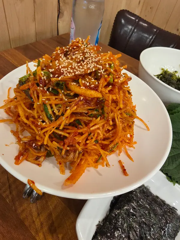 꼬막비빔밥을 김에 싸 먹으니, 또 다른 맛을 느낄 수 있었다. 김의 바삭한 식감과 꼬막비빔밥의 조화가 훌륭했다. 김에 싸 먹으니 꼬막의 풍미가 더욱 깊어지는 듯했다.
