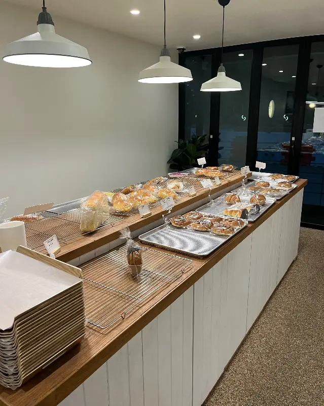 진열대에는 먹음직스러운 빵들이 가득했다. 윤기가 자르르 흐르는 소금빵, 톡톡 터지는 옥수수 알갱이가 매력적인 옥수수빵, 고소한 마늘 향이 코를 자극하는 마늘빵… 종류가 너무 다양해서 쉽게 고를 수가 없었다. 처럼 나무 소재와 스테인리스 트레이의 조화가 돋보이는 진열대 덕분에 빵들이 더욱 맛있어 보였다. 특히 눈길을 사로잡은 것은 ‘단양샌드’였다. 단양에서만 맛볼 수 있다는 특별한 빵이라는 설명에, 망설임 없이 트레이에 담았다.