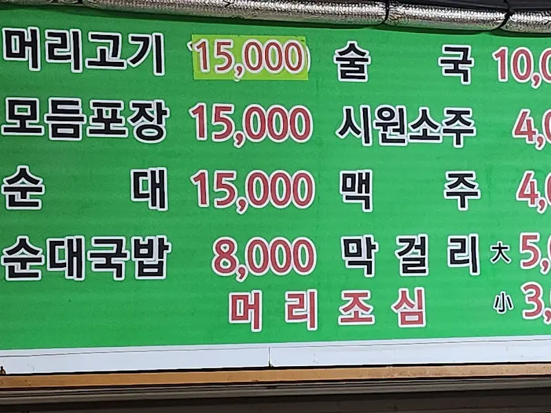 기다리는 동안 메뉴판을 살펴보았다. 순대국밥, 머릿고기, 순대 등 다양한 메뉴들이 있었지만, 나의 선택은 단 하나, ‘시래기순대국밥’이었다. 어릴 적 어머니와 함께 먹었던 그 맛을 잊을 수 없었기 때문이다. 가격은 8,000원. 요즘 물가를 생각하면 나쁘지 않은 가격이다.