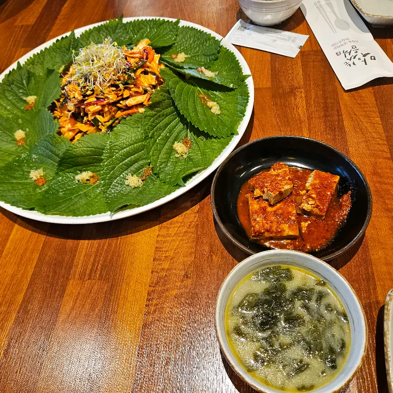 문을 열고 들어서자, 가장 먼저 눈에 띈 것은 넓고 깔끔한 매장이었다. 테이블 간 간격도 넉넉해서 편안하게 식사를 즐길 수 있을 것 같았다. 평일 점심시간임에도 불구하고, 이미 많은 사람들로 북적였다. 가족 단위 손님부터 연인, 친구들까지 다양한 모습이었다. 잠시 기다린 끝에 자리를 안내받고 앉으니, 따뜻한 미역국이 먼저 나왔다. 은은하게 퍼지는 들깨 향이 어릴 적 추억을 떠올리게 했다.