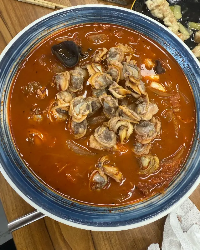 잠시 후, 드디어 기다리고 기다리던 꼬막짬뽕이 나왔다. 뽀얀 김이 솟아오르는 붉은 국물 위로, 탐스러운 꼬막들이 가득 올려져 있었다. 마치 보석을 뿌려놓은 듯한 비주얼에 감탄사가 절로 나왔다. 사진으로 봤던 것보다 훨씬 푸짐하고 먹음직스러워 보였다.