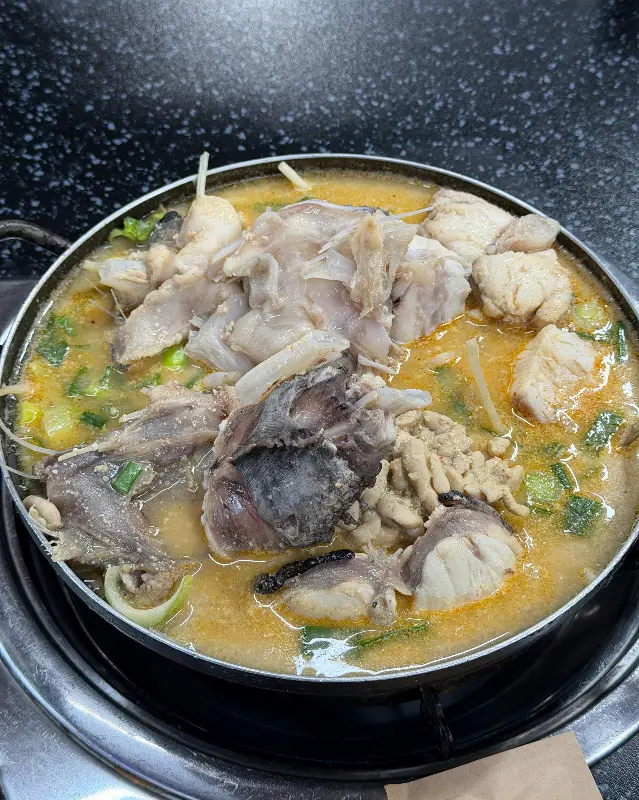 드디어 기다리고 기다리던 아구탕이 테이블 위에 올려졌다. 뽀얀 들깨 국물에 듬뿍 담긴 아구와 미나리의 향긋함이 코를 자극했다. 들깨의 고소한 향과 아구의 담백한 조화가 과연 어떨지, 상상만으로도 침샘이 폭발하는 듯했다.