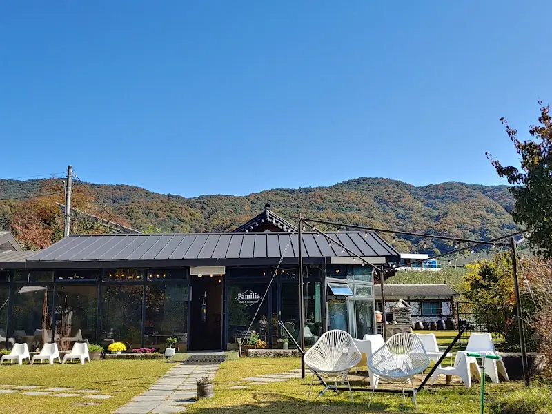 식사를 마치고 레스토랑 주변을 둘러보았다. 파밀리아는 푸르른 산과 밭으로 둘러싸여 있어, 마치 시골 별장에 온 듯한 느낌을 주었다. 레스토랑 바로 옆에는 커피숍도 붙어 있었는데, 파밀리아 영수증을 지참하면 20% 할인 혜택을 받을 수 있다고 한다. 아쉽게도 다음 일정이 있어 커피는 마시지 못했지만, 다음에 방문하면 꼭 들러봐야겠다.