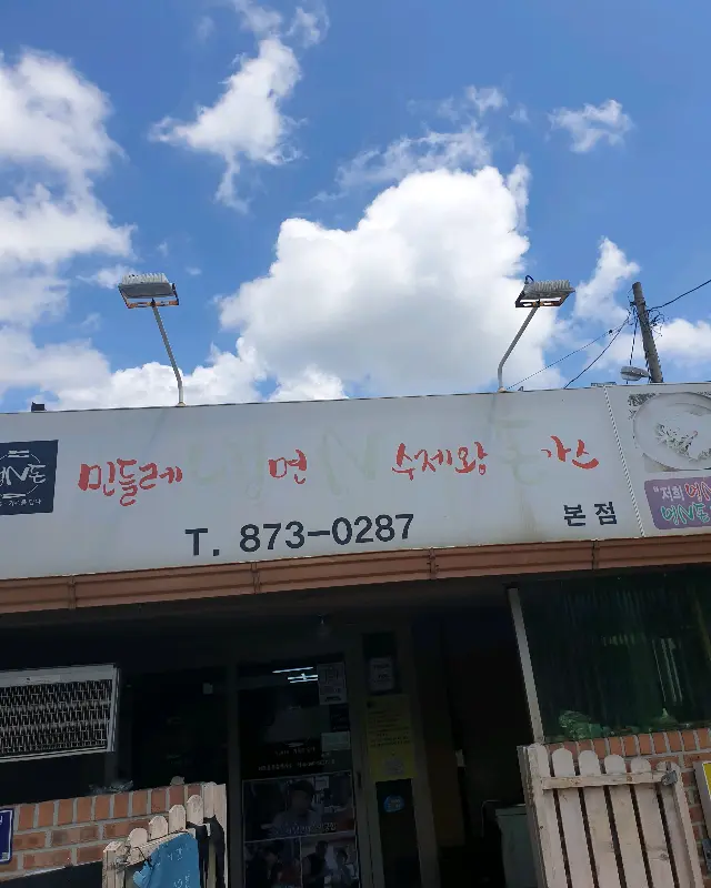 파란 하늘 아래, 흰 구름이 뭉게뭉게 피어오르는 풍경을 감상하며 달리다 보니 어느새 식당 간판이 눈에 들어왔다. 큼지막하게 적힌 상호와 전화번호가 어딘가 모르게 정겹다. 간판 아래에는 손으로 직접 쓴 듯한 “민들레가루로 소중한 손으로 직접 만들어 최고의 맛을 약속합니다”라는 문구가 적혀 있었다. 왠지 모를 믿음이 샘솟았다.