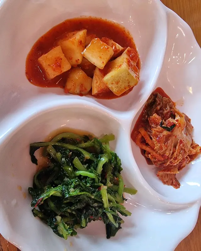 가장 먼저 눈에 들어온 것은, 먹음직스러운 깍두기, 김치, 그리고 겉절이였다. 붉은 양념이 듬뿍 묻어있는 깍두기는 보기만 해도 입안에 침이 고였고, 싱싱한 배추로 갓 담근 듯한 김치는 윤기가 좌르르 흘렀다. 겉절이는 고소한 참기름 향이 코를 자극하며, 신선함을 그대로 드러냈다. 반찬은 맛깔스러운 색감으로 시각적인 즐거움을 더했고, 각각 다른 매력을 뽐내며 국밥에 대한 기대감을 한껏 끌어올렸다.