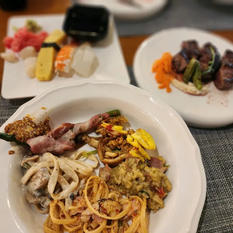 평소 연어를 즐겨 먹는데, 이곳의 연어 초밥은 정말 잊을 수 없는 맛이었다. 다른 뷔페에서 흔히 볼 수 있는 냉동 연어가 아닌, 싱싱한 생연어를 사용하여 퀄리티가 남달랐다. 큼지막한 크기 또한 만족스러웠다.