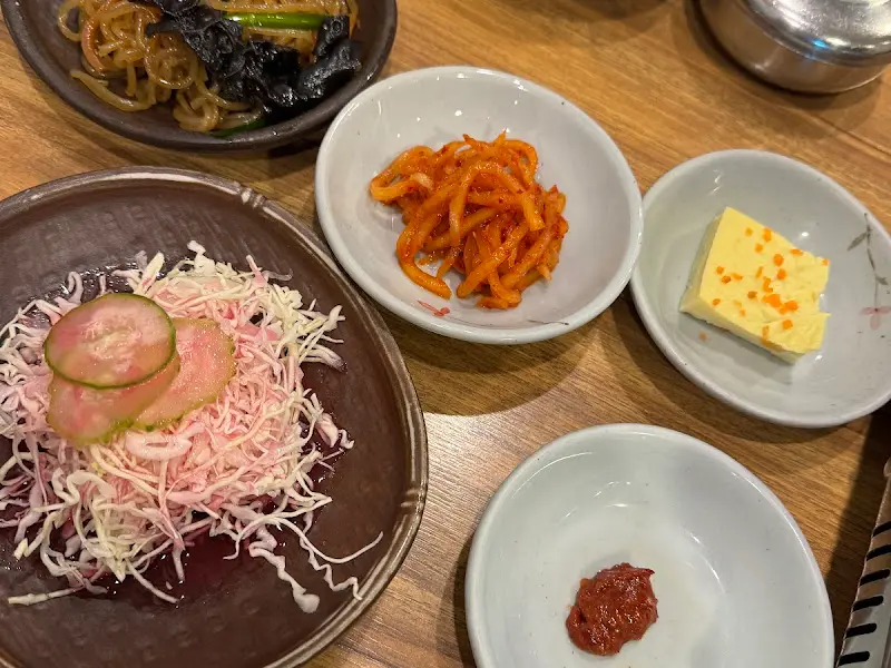 잠시 후, 정갈하게 담긴 밑반찬들이 테이블 위에 놓였다. 샐러드, 잡채, 무생채, 계란찜 등 하나하나 정성이 느껴지는 반찬들이었다. 특히, 흑임자가 뿌려진 샐러드는 신선하고 고소한 맛이 일품이었다. 잡채 역시, 간이 딱 맞아 자꾸만 손이 갔다. 메인 메뉴가 나오기도 전에, 밑반찬 맛에 푹 빠져 버렸다.