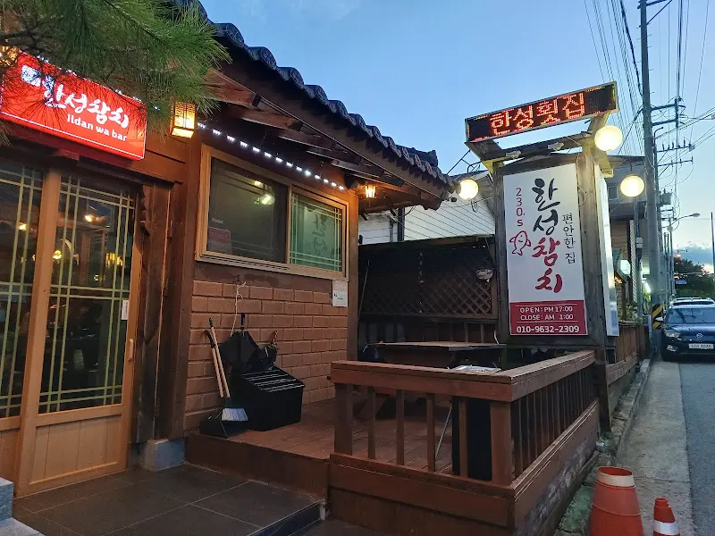 이미지들을 살펴보면, 한성참치는 겉모습부터 남다른 매력을 풍긴다. 붉은색 간판에 쓰인 ‘한성참치’라는 글씨는 정감 있고, 그 아래 작은 글씨로 쓰인 ‘Ildan wa bar’는 위트가 넘친다. 가게 내부는 아늑하고 편안한 분위기로, 나무 소재를 많이 사용하여 따뜻한 느낌을 준다. 테이블 위에는 가지런히 놓인 식기들과 곁들임 메뉴들이 정갈함을 더하고, 은은한 조명은 분위기를 더욱 로맨틱하게 만들어준다. 특히 참치회의 신선함은 사진에서도 고스란히 느껴진다. 붉은 빛깔의 참치 살결은 윤기가 흐르고, 다양한 부위가 먹기 좋게 썰어져 나온 모습은 보기만 해도 군침이 돌게 한다.