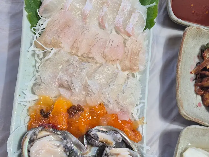 함께 나온 회도 빼놓을 수 없었다. 얇게 썰린 흰 살 생선은 입안에서 사르르 녹아내렸다. 신선한 해산물의 풍미가 입안 가득 퍼지는 순간, 이곳이 왜 속초 맛집으로 불리는지 알 수 있었다. 쌉싸름한 해초와 함께 먹으니, 바다 내음이 더욱 진하게 느껴졌다. 멍게와 해삼도 신선하고 쫄깃한 식감을 자랑했다. 특히, 멍게 특유의 향긋함은 잊을 수 없는 맛이었다.
